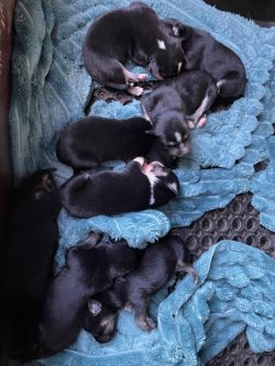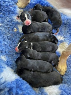 Clover overdid things a bit, I told her one nice bitch pup to Jack would be really nice but she had eight total! Six are doing well and she has two nice bitches. We are very pleased with Holdem from her last litter to Jack, so hoping one of these girls is a keeper. Holdem’s litter sister is now in WA and going well.