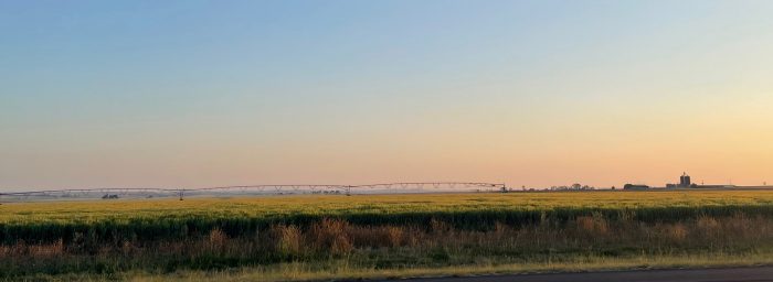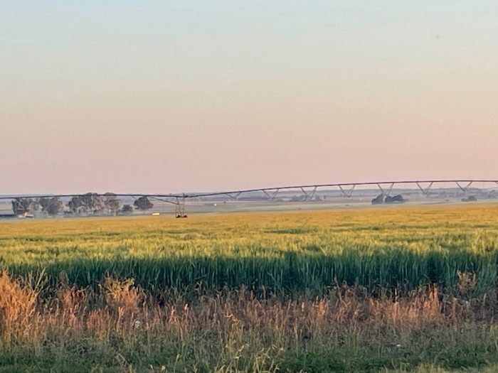 September has been very dry and the crops will be battling to fulfil their early promise. This wheat crop opposite me has been fortunate to get irrigated this last week, but others have been cut for hay.